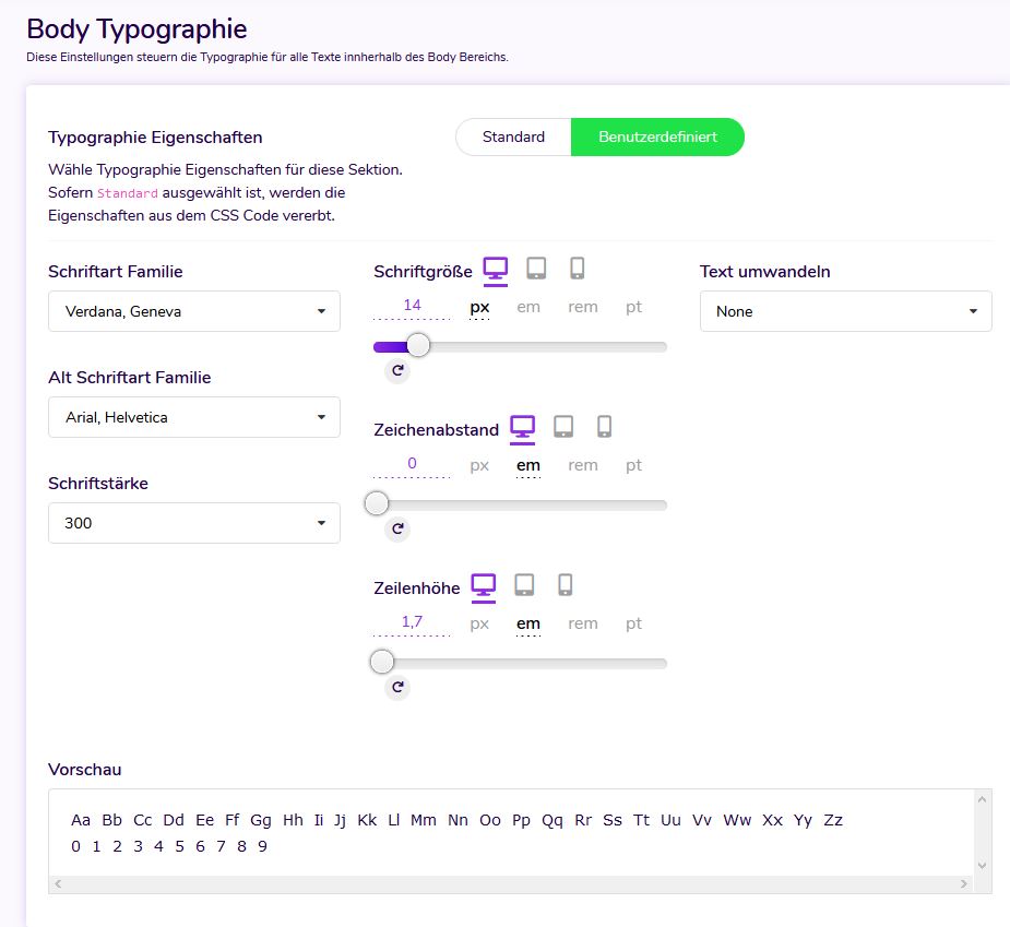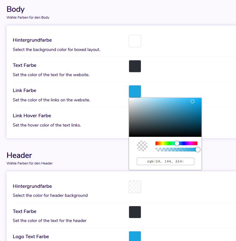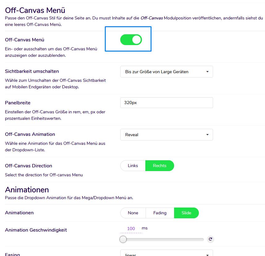 Unser Design bzw. die Konfiguration im Backend ist mehrsprachig, demnach auch in deutsch. Die Bedienung ist ausführlich beschrieben und selbsterklärend, siehe Bild.